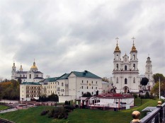 Расположен на высоком холме над Западной Двиной, изначально – городская доминанта. Но Успенский собор был взорван коммунистами, и то, что сейчас доминирует – новодел 2011 года. Новые и лестницы из города, и парк у подножья холма. Благодаря восстановлению Воскресенской церкви 18 в., также уничтоженной коммунистами, сейчас мы можем лицезреть впечатляющий ансамбль – монастырь, церковь и ратушу(см.).