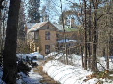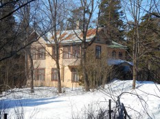 Известно тем, что в 1914-17 гг. здесь отдыхал великий пролетарский писатель, в честь чего и переименовали поселок Мустамяки. Ворота и калитки на замках, дверь в дом – настежь. Мемориальная доска. Внутрь не полез, не такой уж я фанат Буревестника революции, но упомянуть это место, наверное, надо.