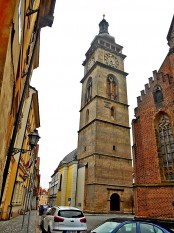 Стоит на самой высокой точке города, снабжен двумя башнями, да ещё независимая Белая башня рядом. Зрелище роскошное. Белая башня - колокольня собора, построена в 1574 г. из песчаника (в отличие от краснокирпичного собора), отсюда название. Обратите внимание на часы – часовая стрелка длиннее минутной. Вот по таким часам и надо жить…