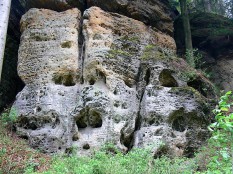 Любопытные фигуры выветривания и вымывания, напомнившие очертаниями интерьер костехранилища в Кутной Горе. Странное сближение.