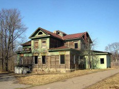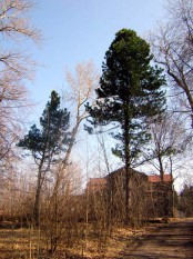 Деревянный дом выпотрошен, а парк с выходом к озеру меня-дендрофила порадовал огромными липами, дубами и парой кедровых сосен, вполне живых, несмотря на общую запущенность.