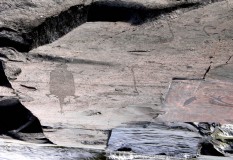 Главный персонаж – конечно, Бес (или, как предполагают некоторые, Бесиха). Петроглиф искажен монахами в 16 веке, но это, тем не менее, внушительное зрелище. Много изображений водоплавающих существ – в основном, лебеди, а также выдры, бобр и прочая мелкая живность. Туда нужно попадать по более-менее тихой воде во второй половине дня. Освещение очень влияет (это не Альта, где всё суриком подкрашено, здесь по-честному), к тому же большинство петроглифов (и сам Бес в т.ч.) расположены у самого уреза, в шторм их просто не увидеть. Недействующий деревянный маяк дополняет картину. Место посещаемое – не надейтесь помедитировать в одиночестве. И да, было бы хорошо, если бы вы не въезжали прямо на мыс на внедорожной технике.