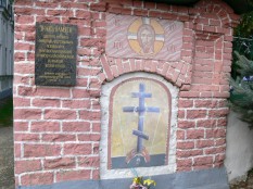 Чудовищно искаженный многочисленными пристройками средневековый храм. Рядом – знак памяти двухсот русских офицеров, арестованных ЧК и распиленных командой китайских красноармейцев. Всё-таки, страшнее человека зверя нет.