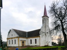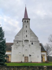 Башня действительно средневековая, очень хороша. Всё остальное перестроено в крестообразную форму без сохранения исторического вида.
