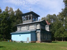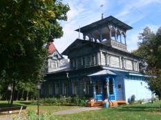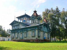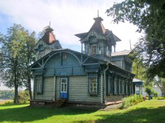 Не столь фантазийный дом, как иные терема (Асташово, Володарск…), но тоже выдуман на славу, с четырьмя разными фасадами и беседкой-верандой на крыше. Это ропетовский стиль, и хозяин – местный купец и промышленник (похоже, на альбомы Ропета западали купцы и богатые крестьяне, остальные считали дурновкусием). Мне нравится, хоть я и не пойми кто – уж точно не купец… А за уродскую пристройку руки бы кому-то пообрывать.