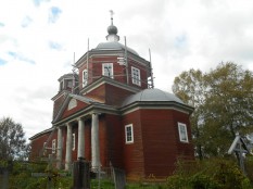 Село тверских карел, но церковь – абсолютно не карельская (и не новгородская) – безупречный деревянный классицизм, слегка опередивший своё время, но скучноватый.