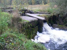 Остатки бетонно-валунной плотины, живописное место. Судя по старым фото, нынешний дом администрации лыжной базы построен на фундаменте мельницы.