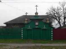 Единственное культовое здание поселка, привлекающее внимание благодаря оригинальным воротам, гармонирующим с окружающими покрытыми резьбой домами.