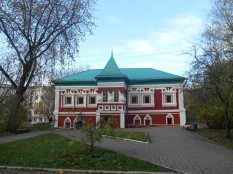 По обычаю, палаты 17 в. оформляю отдельной закладкой. Домик замечательный, Богаче оформлением иных своих собратьев. Такое впечатление, что именно с этих палат начался калужский стиль оформления фасадов – красно-белые цвета, выделение наличников и выступающих фрагментов… Впрочем, более старых зданий, кроме Покровской церкви, в городе не сохранилось – может, там уже всё это было.