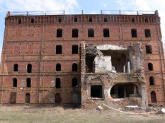 Мельница была огромная, оборудованная по последнему слову техники – 5 этажей, электропривод, своя ГЭС… Проектировал всё это сын хозяина. Когда в назначенный день мельница не завелась, хозяин прямо там и повесился, а сын в скором времени запустил-таки процесс и сам стал богатым хозяином. История подозрительная, но в мельницах, известное дело, всякая чертовщина себя являет. Проработала до Великой Отечественной, когда была сильно разрушена – так и стоит в зловещем виде.