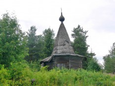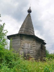 Стоит в зарастающем поле за деревней, шатер на восьмерике. Похоже, когда-то было ещё и крыльцо на две стороны, но сейчас уже только угадывается.