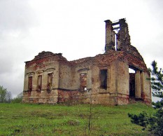Остались стены да фрагмент каменной ограды кладбища. Место любопытное - форма кладбищенского холма напоминает городище. Пока информации не нашёл, может, кто поделится знаниями?