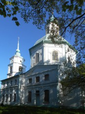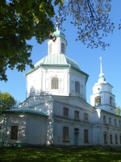 В своём стиле весьма неплоха, хотя и традиционный восьмерик на четверике. Справа от церкви, за оградой, на холмике – огромные солнечные часы, принадлежность бывшей усадьбы начала 19 в..