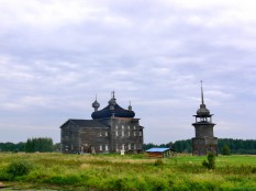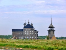 Кроме труднодоступности и больших размеров, радует ещё и колокольня, недавно выпрямленная волонтерами. Честно говоря, где-то вблизи наезженных трасс такая относительно свежая постройка не произвела бы впечатления, а здесь – очень даже.