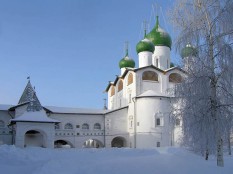 Крупный традиционный собор с крыльцами и галереей (у которой, в свою очередь, тоже крыльца на две стороны) уже сделал бы этот монастырь нерядовым. Но трапезная церковь размерами и украшениями превосходит всякое воображение – притом, не кажется несуразной. Впечатляют изразцы, но уж больно высоко – надо иметь хорошую оптику.