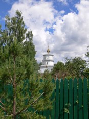 В монастыре – два храма (типовой 19 в. и симпатичный деревянный новодел), святой колодец и овчарка, бегающая без привязи (видимо, не голодная). Всё это производит впечатление скорее сельского кладбища (тем более, оно там тоже есть), а не обители.