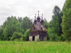 От деревни не осталось и следа, а часовня слегка в ропетовском стиле стоит в чистом поле и теряет оперение.