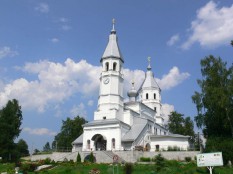 Уникальный храм с двумя равновысокими башнями (одна, с часами, над входом, другая – над основным объемом) и галереей, опоясывающей второй этаж. Проект фантастический, архитектор неизвестен…