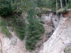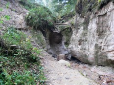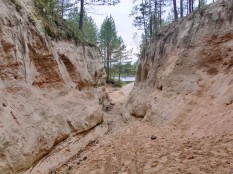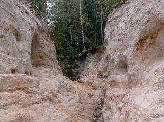 Конечно, я бы предпочел полюбоваться Большим Лужским каньоном, но, за неимением такового в природе, довольствовался Малым. Занятно. Совсем никакой ручеек прорыл себе русло глубиной в несколько метров, довольно живописно, ещё и с изгибом.