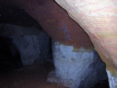 Много засыпанных входов, рабочие же расположены дальше всех по берегу. Добывали песок для стекольного завода, он везде под ногами - ходить очень приятно. А вот на голове - красный песок из верхних слоев, что хуже. Галереи, колонны, залы (небольшие) - всё, что ожидаешь. Живности не заметил, только мох у входа