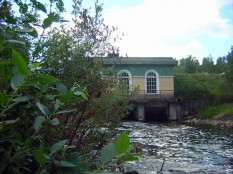 На р. Быстрица. Действующая, от этого не слишком эффектная (нет в мире совершенства). Вода канализирована, брызг нет... Видимо, надо смотреть, когда открывают водосброс. Пешеходная переправа.