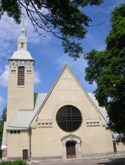 Закончено обратное преобразование из кинотеатра (надстроена башня и установлен шпиль). Теперь это - типовая узнаваемая кирха.
