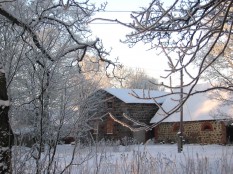 Дом брошен совсем недавно, в 2006 сгорела веранда, но общее впечатление пока удается – некая изюминка была. Квадратный пруд и небольшой, но приятный парк дополняют картину. А уж амбары – загляденье!