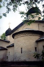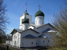 Традиционная псковская церковь, небольшая, белая, в сохранности. Несомненно, изюминка города. Если бы Остров состоял из этой церкви и двух мостов вокруг неё (см.), он был бы просто чудом.