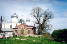 Храм XVI в. в традиционном псковском стиле, один из приделов пристроен в 1903 – модерн. Выглядит диковато, но симпатично.