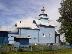 Где-то в сети было упоминание её, как единственной деревянной церкви Новгородчины, не сожженной и не свезенной в музей. Увидев, понял почему: первое — она сильнодействующая (каламбур!) — в 8 утра вокруг вовсю месился народ, второе — она клетского типа, для музея невыигрышного. В своем роде неплоха.